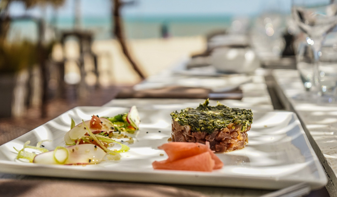 Salmon tartare with seaweed prepared at La Cible restaurant in Saint-Martin-de-Ré