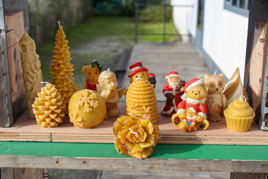 The candles are handmade with beehive wax