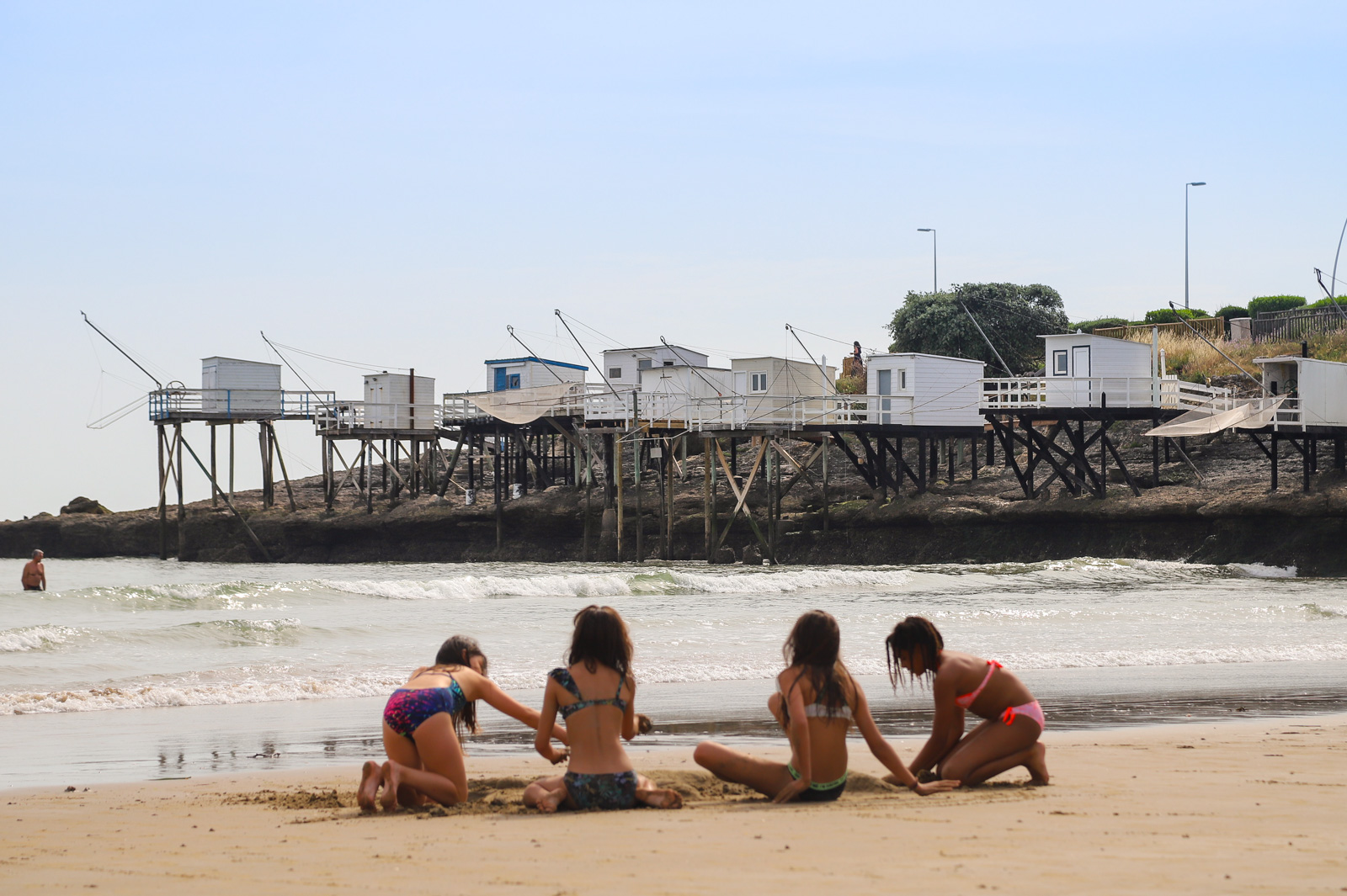 Nous débutons cette promenade de 3 km sur la vaste plage de Pontaillac située sur la commune de Vaux-sur-Mer. Dépaysement absolu garanti dans cette grande anse blottie entre les falaises ! Ici, c’est le domaine des carrelets, ces petites cabanes de pêcheurs en bois, montées sur pilotis, prolongées d’un filet quadrangulaire tendu dans le vide. La falaise sur la droite de la plage est particulièrement remarquable par la magnifique série de 10 carrelets qui contribuent à la personnalité bien marquée de cette plage ! À l’abri des vents, pour un bain de mer ou de soleil jusqu’à son coucher, la plage du Pontaillac est la promesse d’un moment de détente sans pareil sur le sable doré. Autre curiosité sur cette plage : le casino de Royan, typique de l’architecture des années 30 !